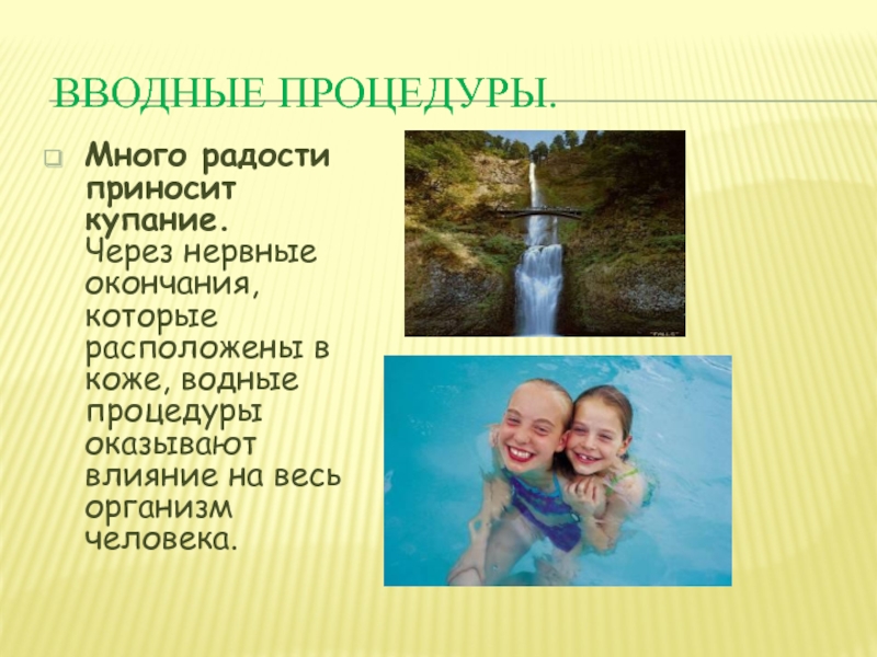 коже, водные процедуры оказывают влияние на весь организм человека.