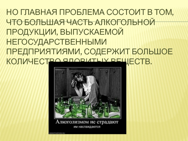 Слайд 22Но главная проблема состоит в том, что большая часть алкогольной продукции,