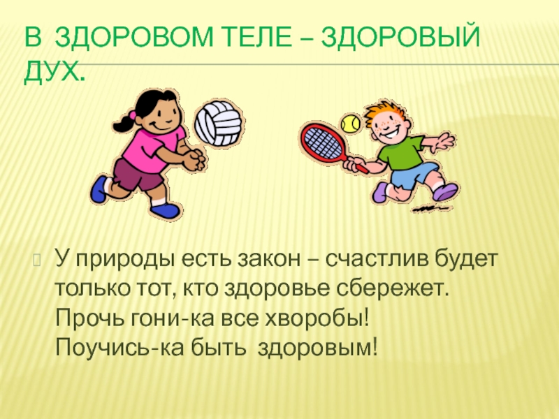 будет только тот, кто здоровье сбережет. Прочь гони-ка все хворобы! Поучись-ка быть здоровым!