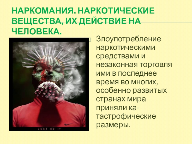 Слайд 23Наркомания. Наркотические вещества, их действие на человека.