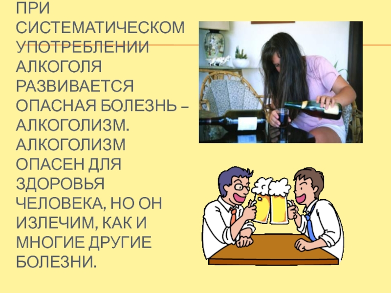 Слайд 21При систематическом употреблении алкоголя развивается опасная болезнь – алкоголизм. Алкоголизм опасен