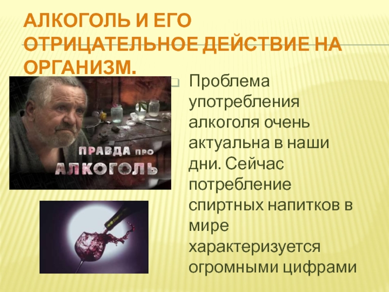 Слайд 20Алкоголь и его отрицательное действие на организм.
