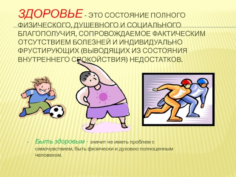 Слайд 2Здоровье - это состояние полного физического, душевного и социального благополучия, сопровождаемое