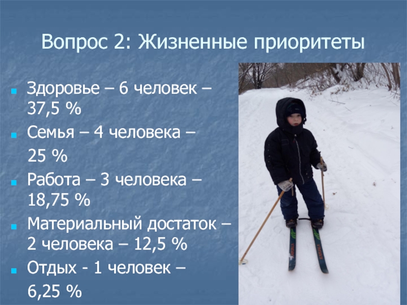Слайд 24Вопрос 2: Жизненные приоритеты