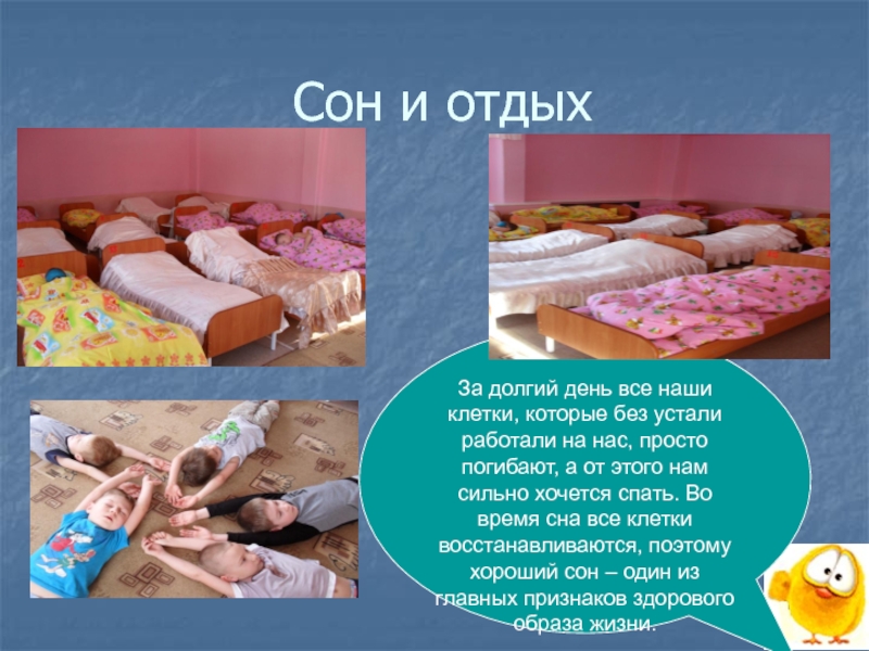 устали работали на нас, просто погибают, а от этого нам сильно хочется спать. Во время сна все клетки восстанавливаются, поэтому хороший сон – один из главных признаков здорового образа жизни.