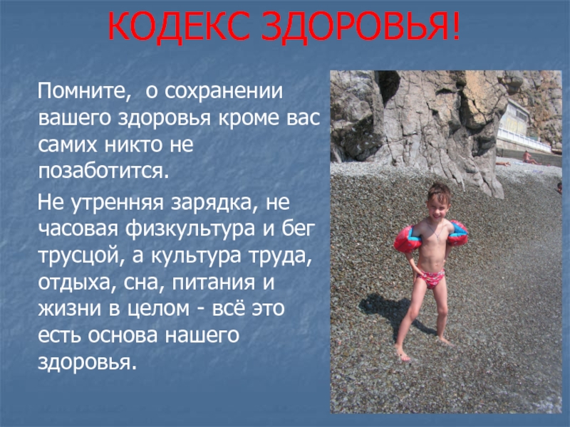 Слайд 31 Помните, о сохранении вашего здоровья кроме вас самих никто