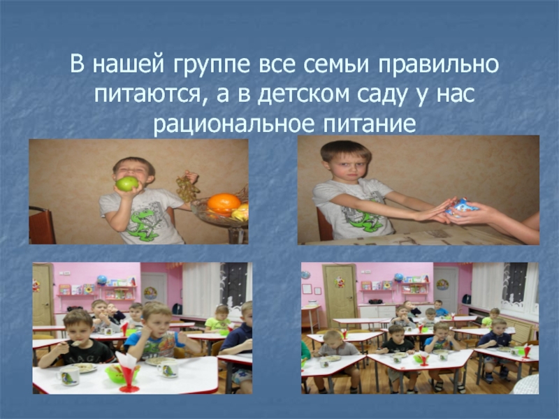 Слайд 12В нашей группе все семьи правильно питаются, а в детском саду