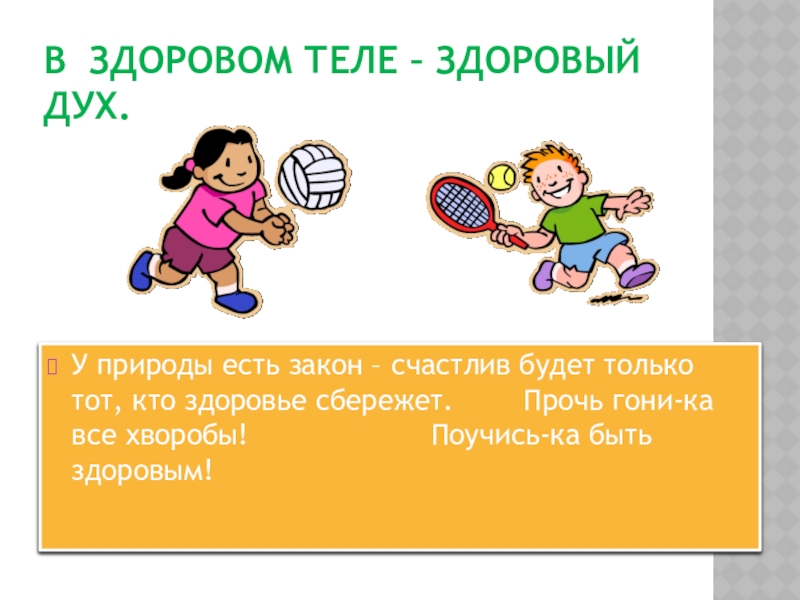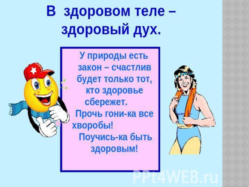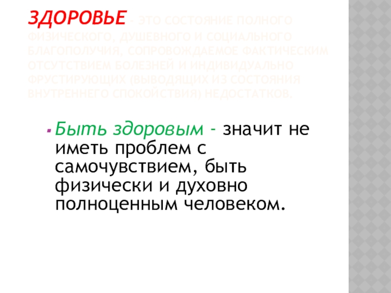 Быть здоровым - значит не иметь проблем с самочувствием, быть физически и духовно полноценным человеком.