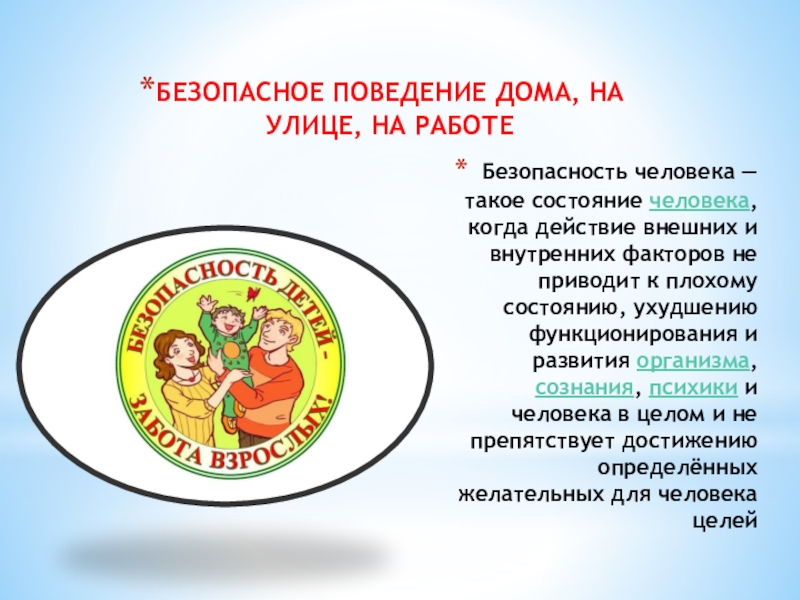 БЕЗОПАСНОЕ ПОВЕДЕНИЕ ДОМА, НА УЛИЦЕ, НА РАБОТЕ