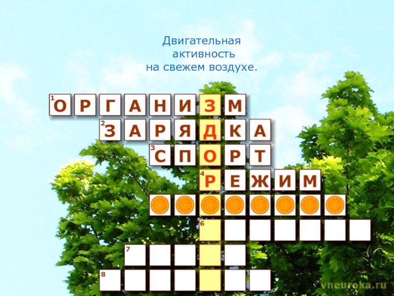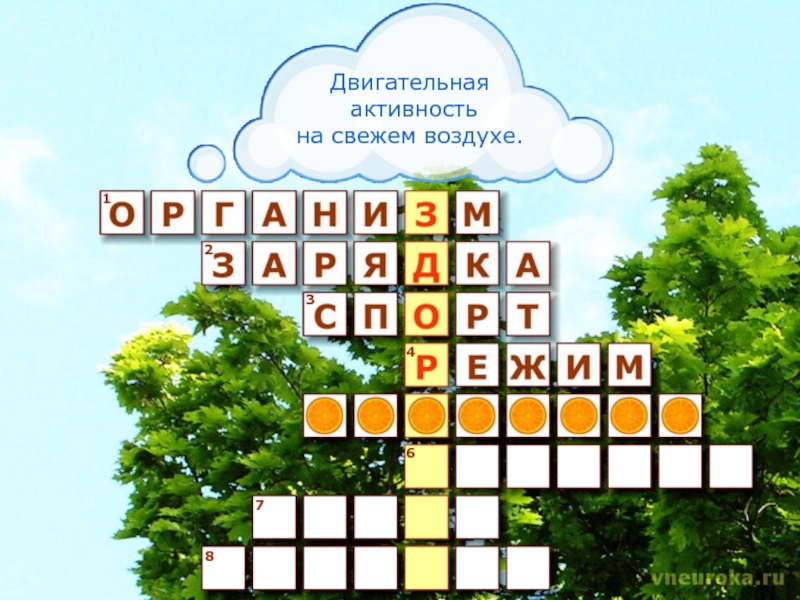 12345678Двигательная активностьна свежем воздухе.