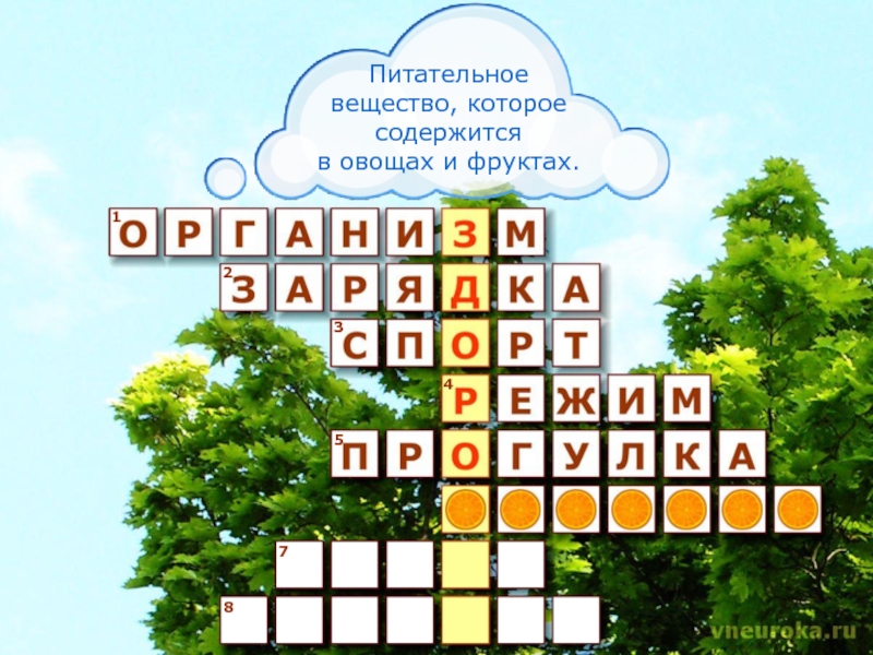 12345678Питательное вещество, котороесодержитсяв овощах и фруктах.