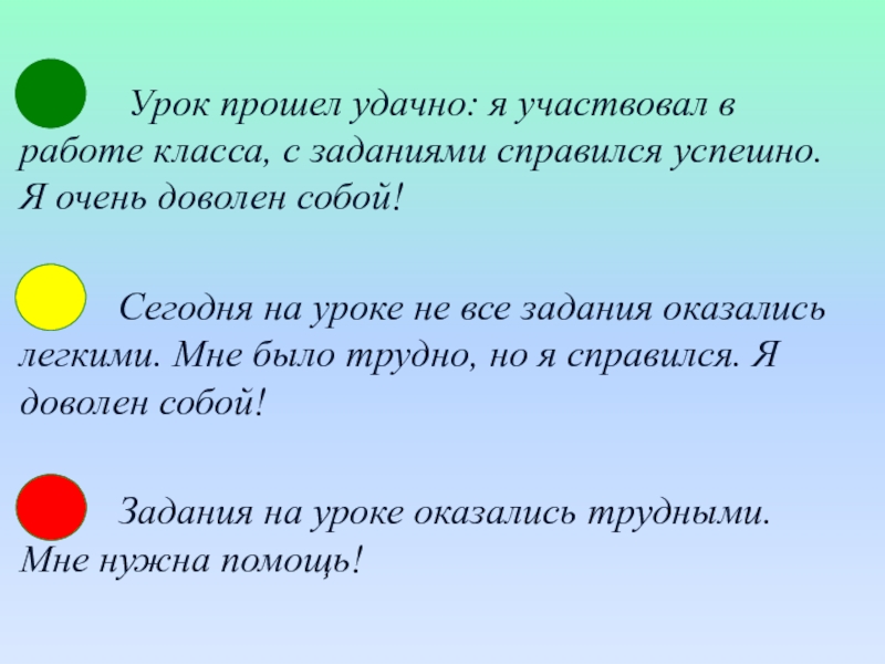 Урок прошел удачно: я участвовал в работе класса, с заданиями справился