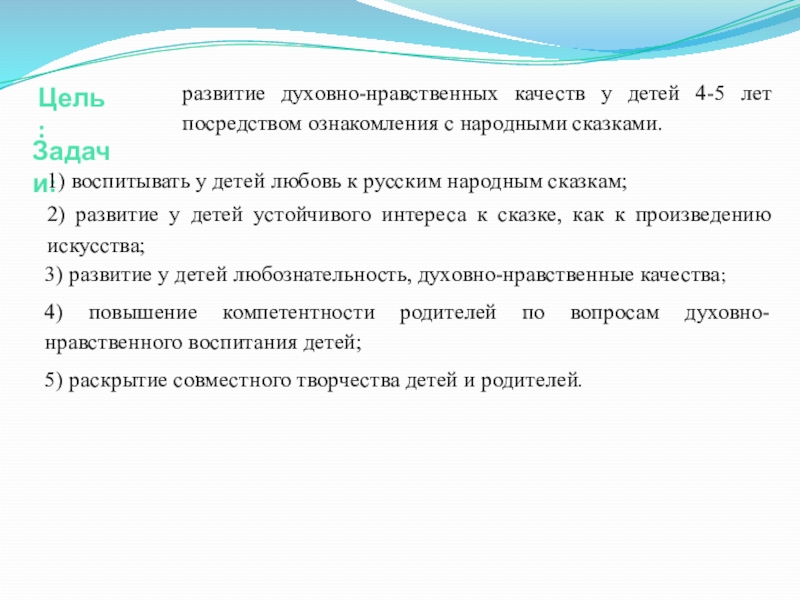 4) повышение компетентности родителей по вопросам духовно-нравственного воспитания детей;