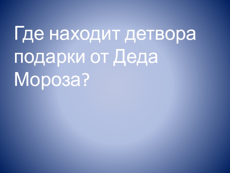 Слайд 4 Где находит детвора подарки от Деда Мороза?