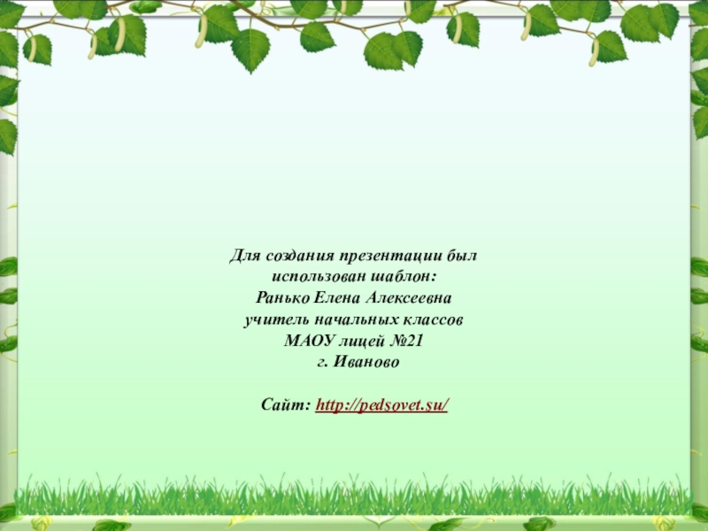 Для создания презентации был использован шаблон:Ранько Елена Алексеевна учитель начальных классов МАОУ лицей №21 г. ИвановоСайт: http://pedsovet.su/