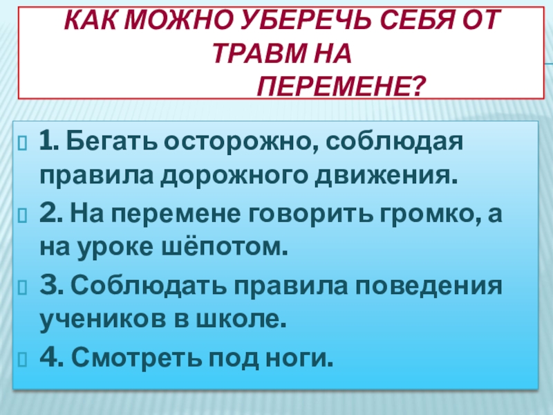 1. Бегать осторожно, соблюдая правила дорожного движения.