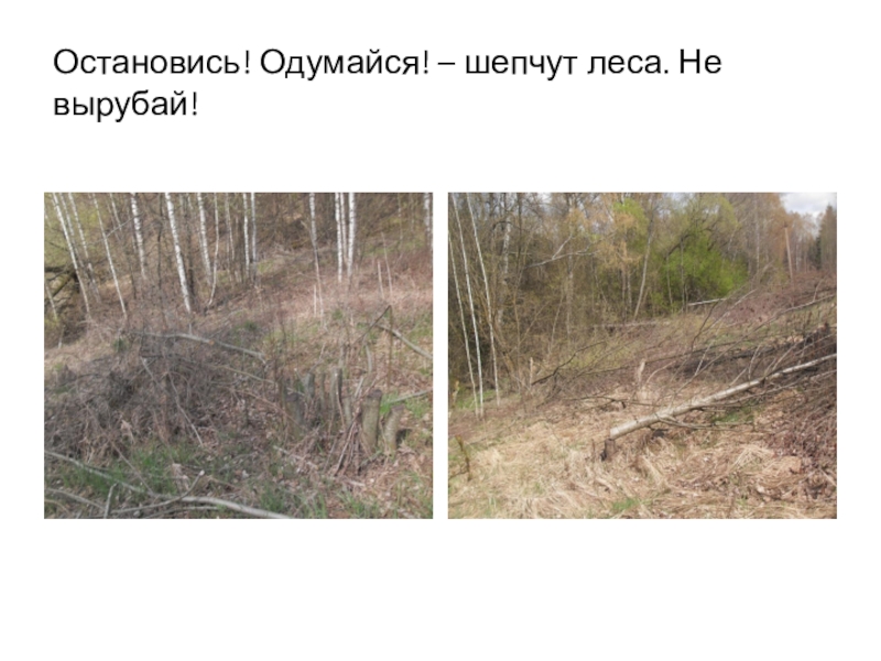 Слайд 3Остановись! Одумайся! – шепчут леса. Не вырубай!