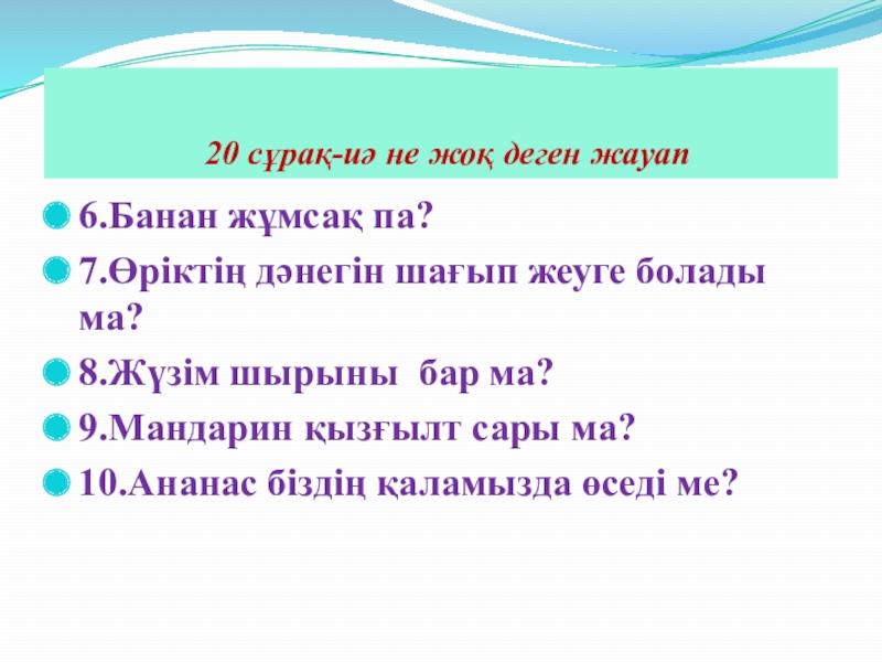 20 сұрақ-иә не жоқ деген жауап