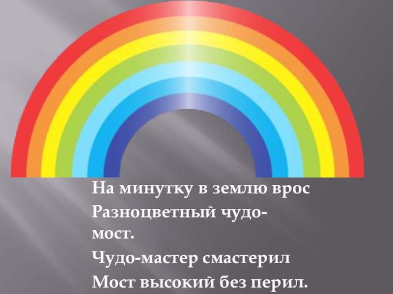 На минутку в землю вросРазноцветный чудо-мост.Чудо-мастер смастерилМост высокий без перил.