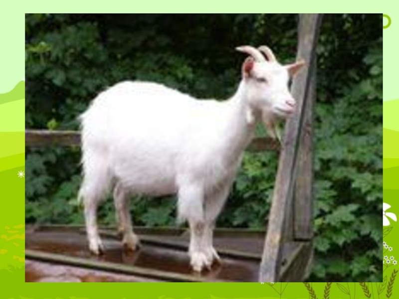 Слайд 6Есть бородка, шерсть и ножки, Ушки, хвост, а также рожки. Хоть я блею,