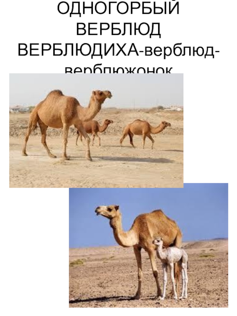 Слайд 50ОДНОГОРБЫЙ ВЕРБЛЮД ВЕРБЛЮДИХА-верблюд-верблюжонок