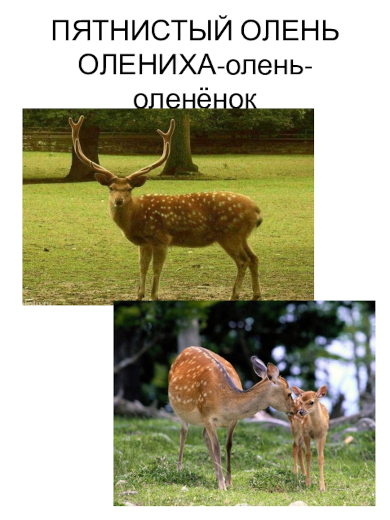 Слайд 21ПЯТНИСТЫЙ ОЛЕНЬ ОЛЕНИХА-олень-оленёнок