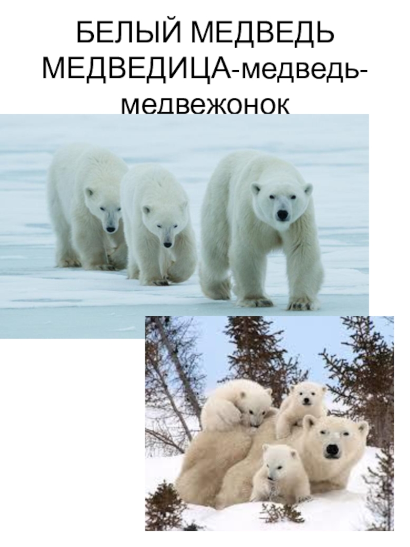 Слайд 22БЕЛЫЙ МЕДВЕДЬ МЕДВЕДИЦА-медведь-медвежонок