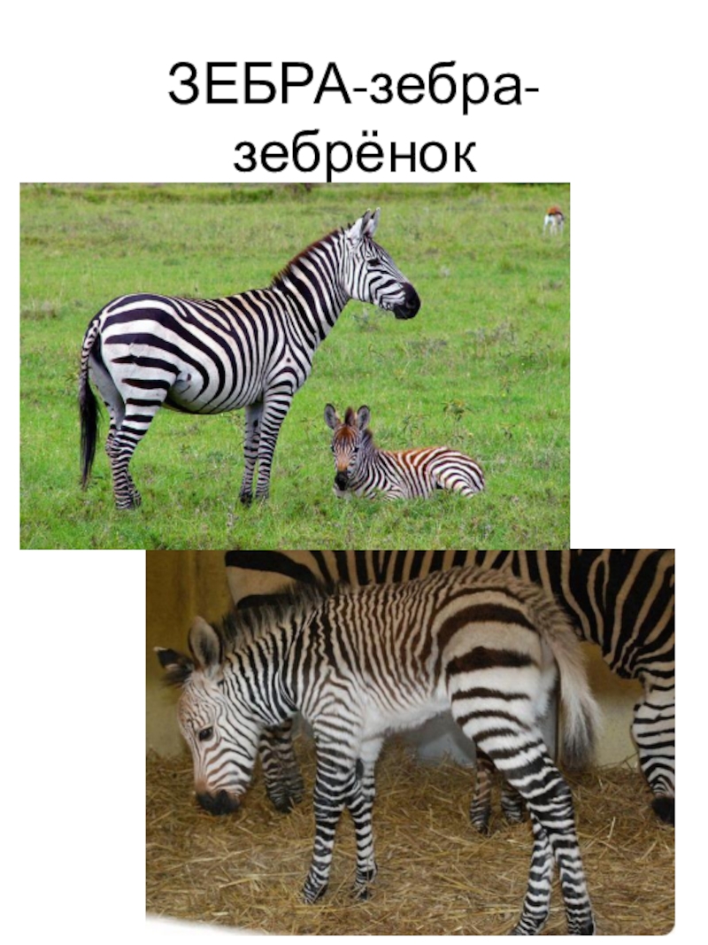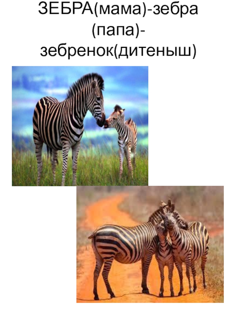 Слайд 2ЗЕБРА(мама)-зебра(папа)- зебренок(дитеныш)