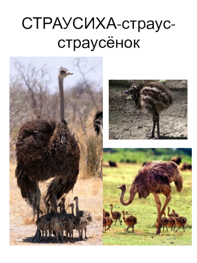 Слайд 42СТРАУСИХА-страус- страусёнок
