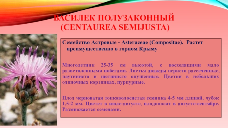 Слайд 45Василек полузаконный