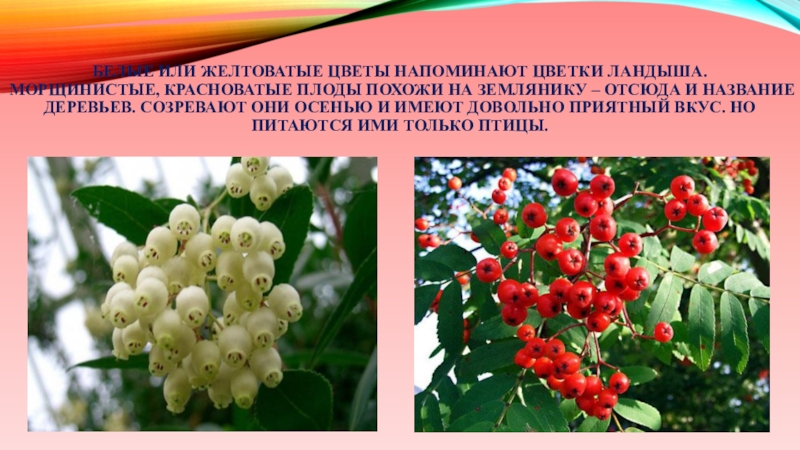 землянику – отсюда и название деревьев. Созревают они осенью и имеют довольно приятный вкус. Но питаются ими только птицы.