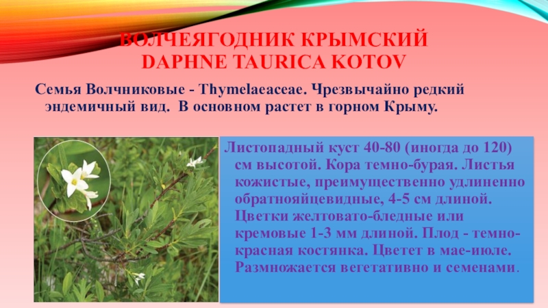 Слайд 44Волчеягодник крымский