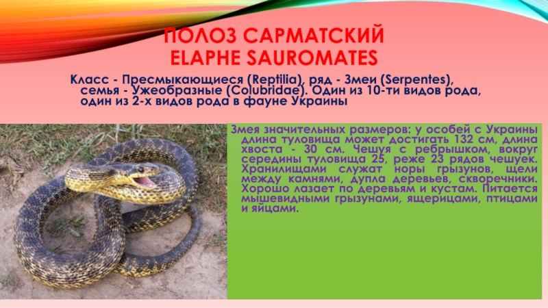 Слайд 22Полоз сарматский