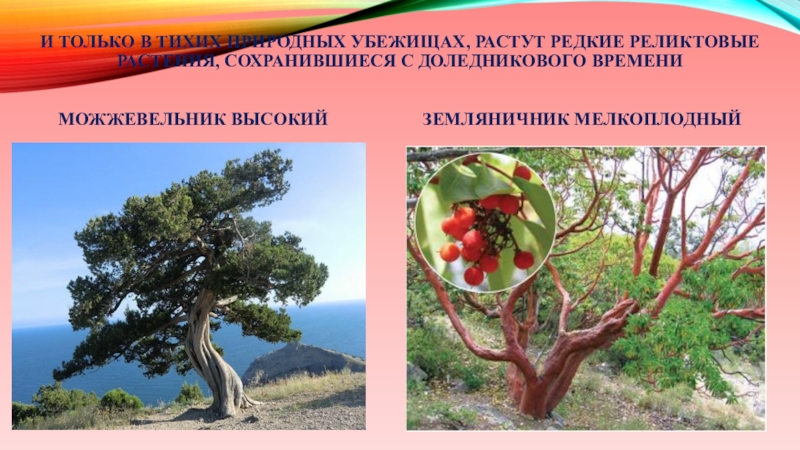 Слайд 34И только в тихих природных убежищах, растут редкие реликтовые растения, сохранившиеся