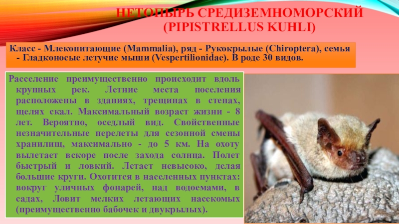 Слайд 13Нетопырь средиземноморский (Pipistrellus kuhli)