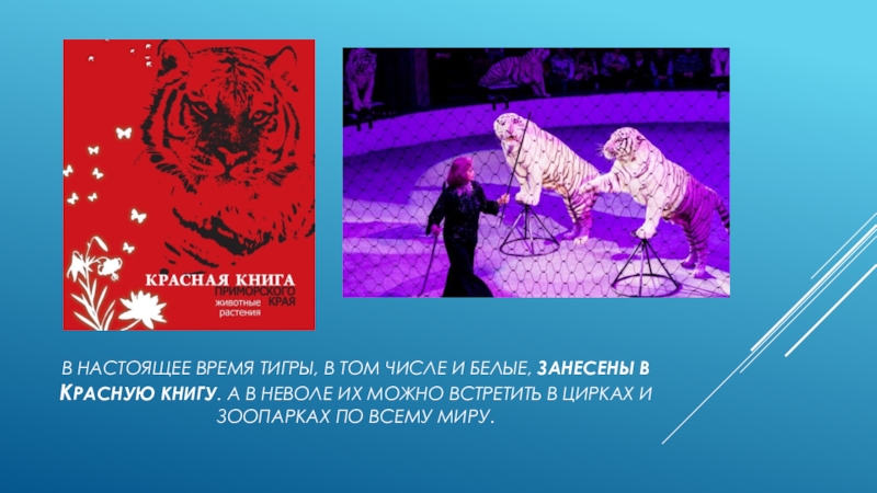 Слайд 6В настоящее время тигры, в том числе и белые, занесены в