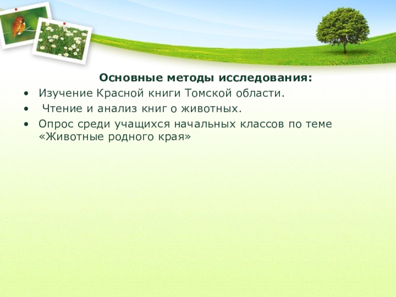 Уже имея запас знаний о животных, мы видим продолжение своей работы в подробном изучении животного мира Томской области. В дальнейшем мы будем принимать активное участие в экологических акциях «Защити природу!»
