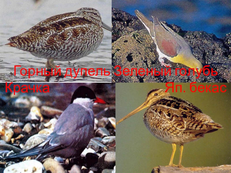 Слайд 16Горный дупель Зеленый голубь Крачка