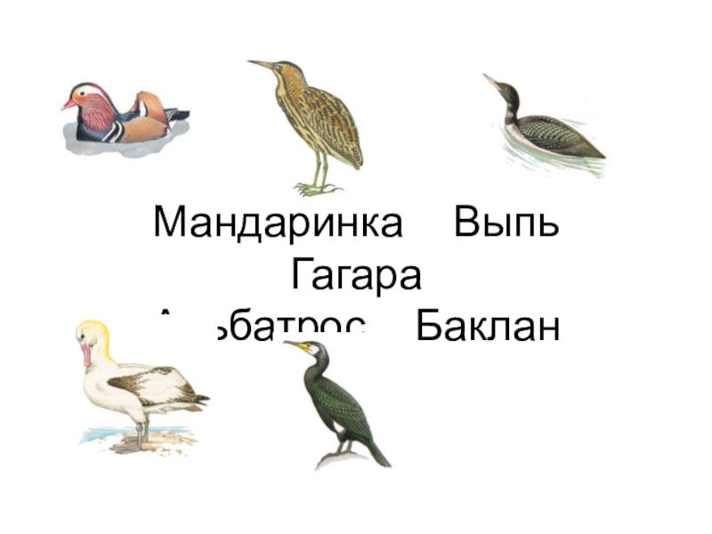 Мандаринка   Выпь      Гагара   Альбатрос   Баклан