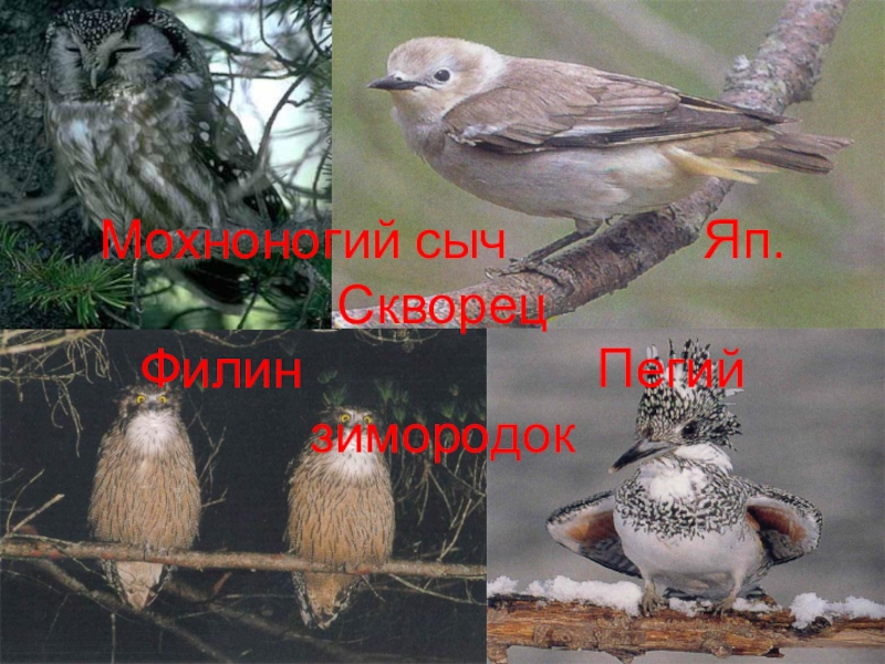 Слайд 17Мохноногий сыч Яп. Скворец Филин