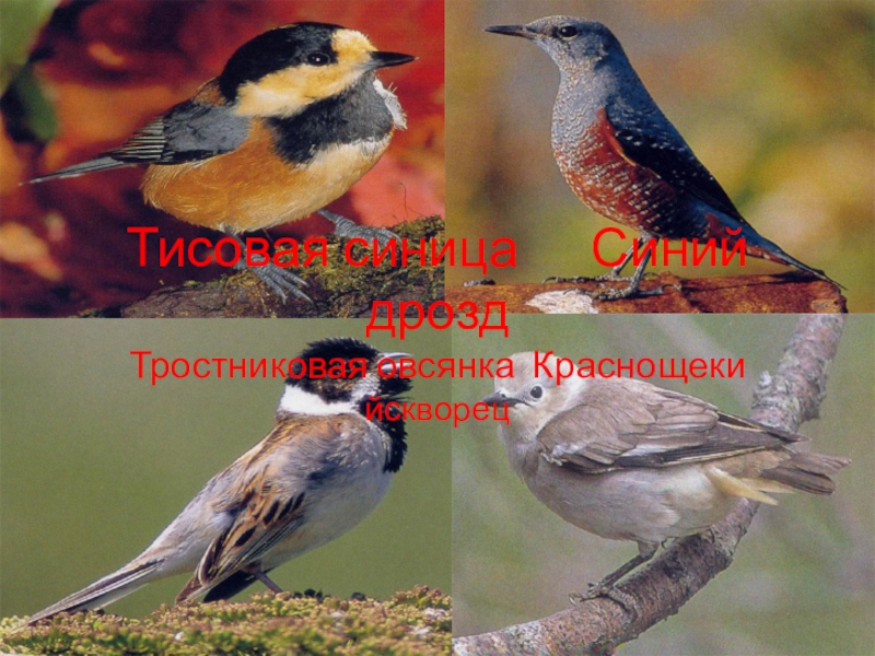 Тисовая синица   Синий дрозд Тростниковая овсянка Краснощеки йскворец