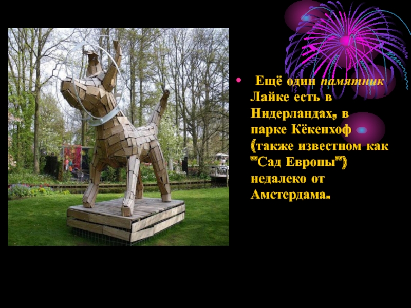 Ещё один памятник Лайке есть в Нидерландах, в парке Кёкенхоф
