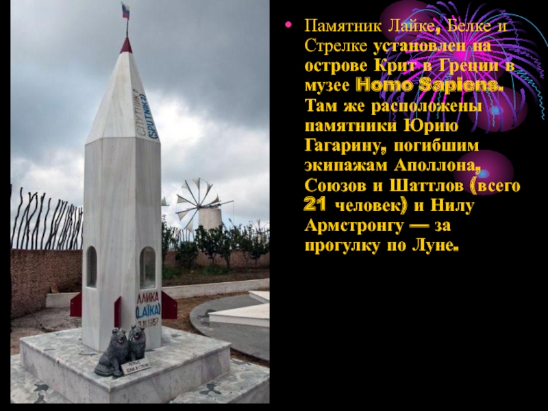 Памятник Лайке, Белке и Стрелке установлен на острове Крит в Греции