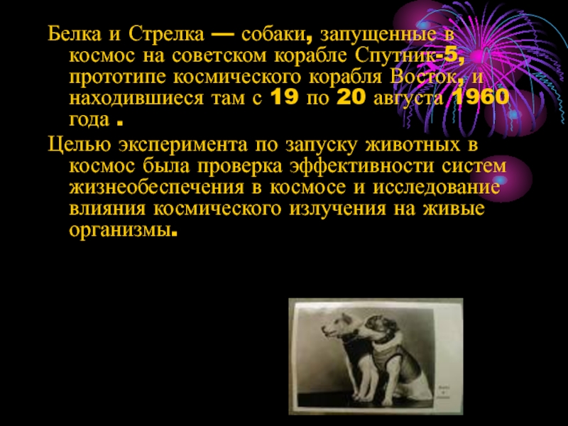Слайд 12Белка и Стрелка — собаки, запущенные в космос на советском корабле
