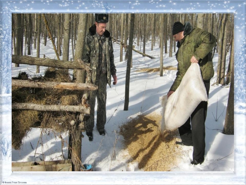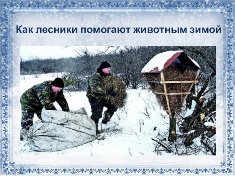 Слайд 28Как лесники помогают животным зимой