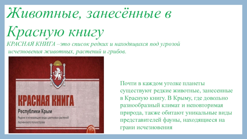 Почти в каждом уголке планеты существуют редкие животные, занесенные в Красную книгу. В Крыму, где довольно разнообразный климат и неповторимая природа, также обитают уникальные виды представителей фауны, находящиеся на грани исчезновения