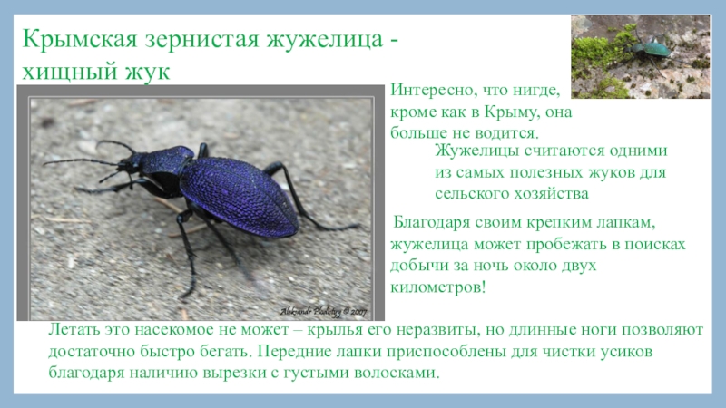 Благодаря своим крепким лапкам, жужелица может пробежать в поисках добычи за ночь около двух километров!