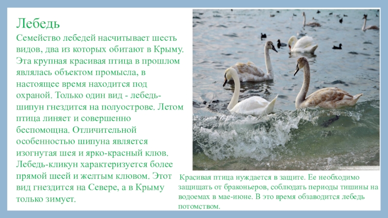 Красивая птица нуждается в защите. Ее необходимо защищать от браконьеров, соблюдать периоды тишины на водоемах в мае-июне. В это время обзаводится лебедь потомством.