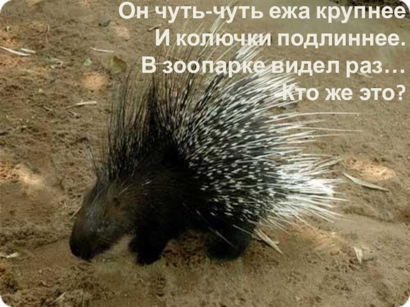 Слайд 16Он чуть-чуть ежа крупнее И колючки подлиннее. В зоопарке видел раз… Кто же это?