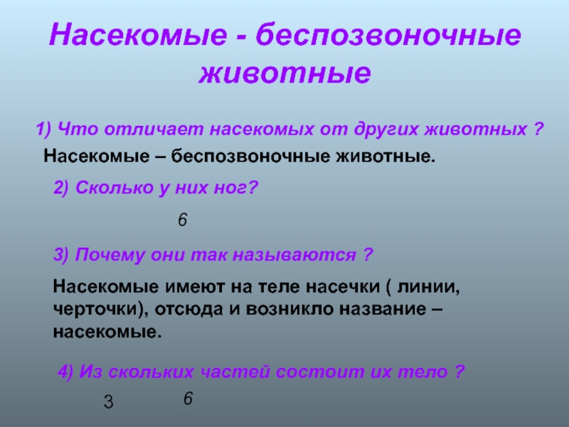Насекомые имеют на теле насечки ( линии, черточки), отсюда и возникло название – насекомые.